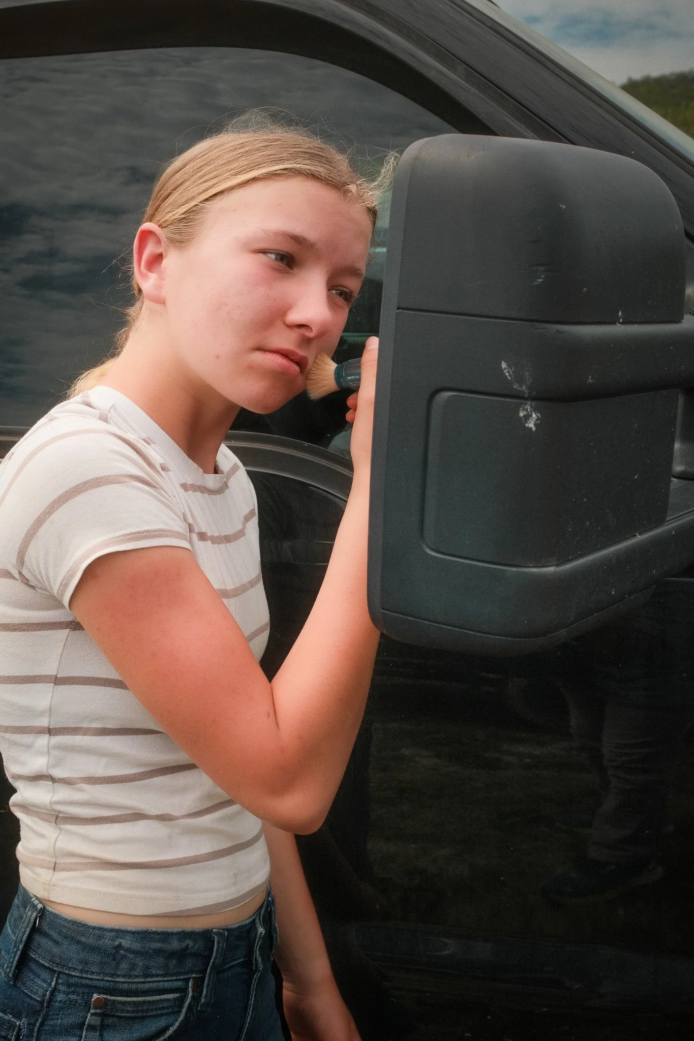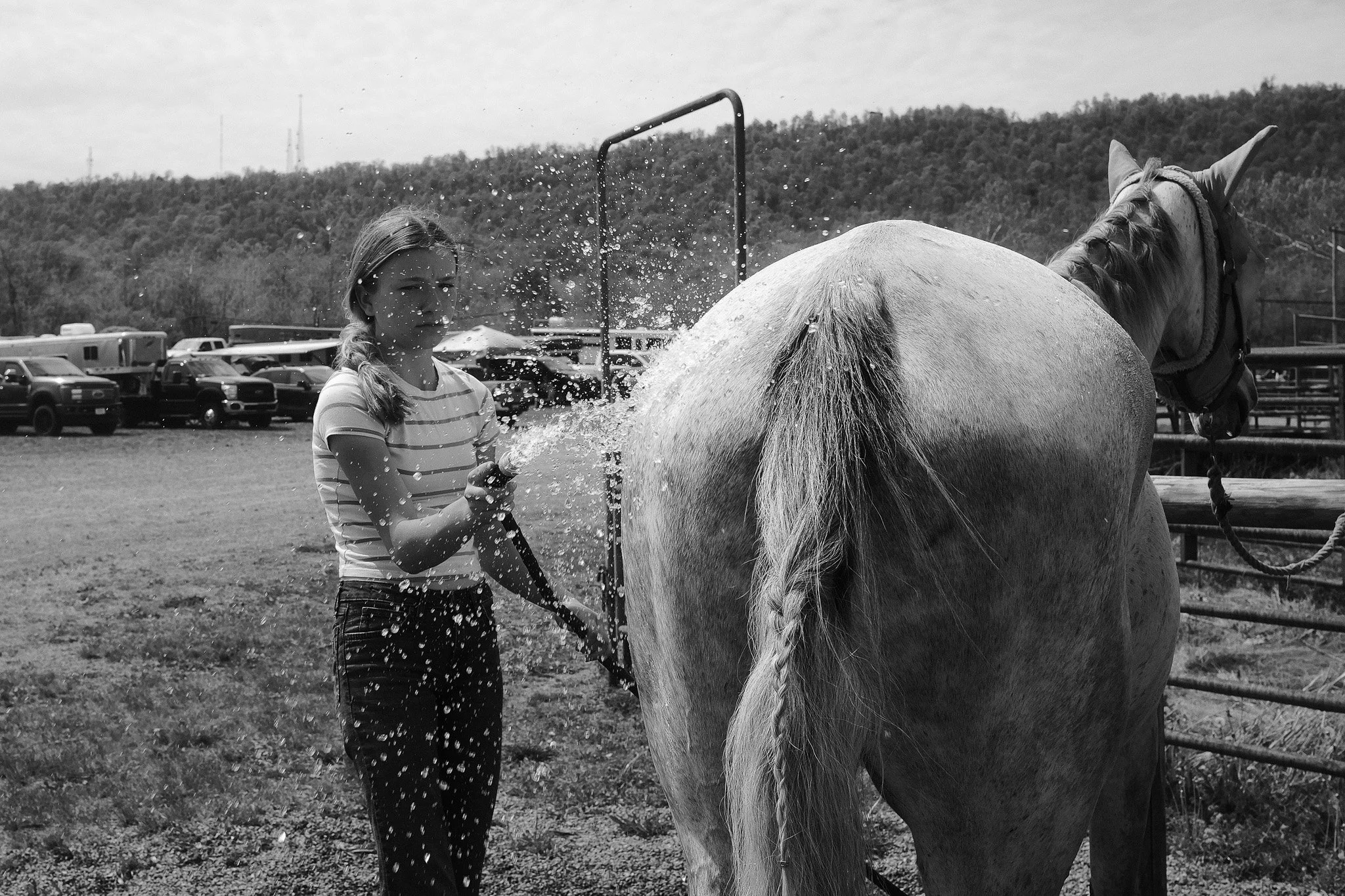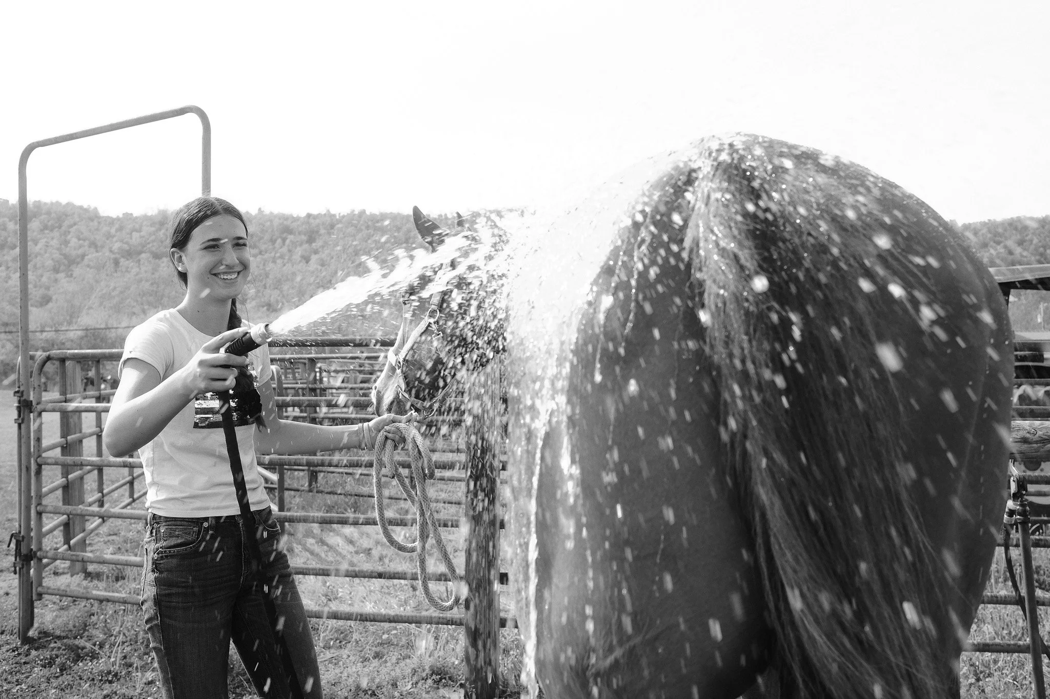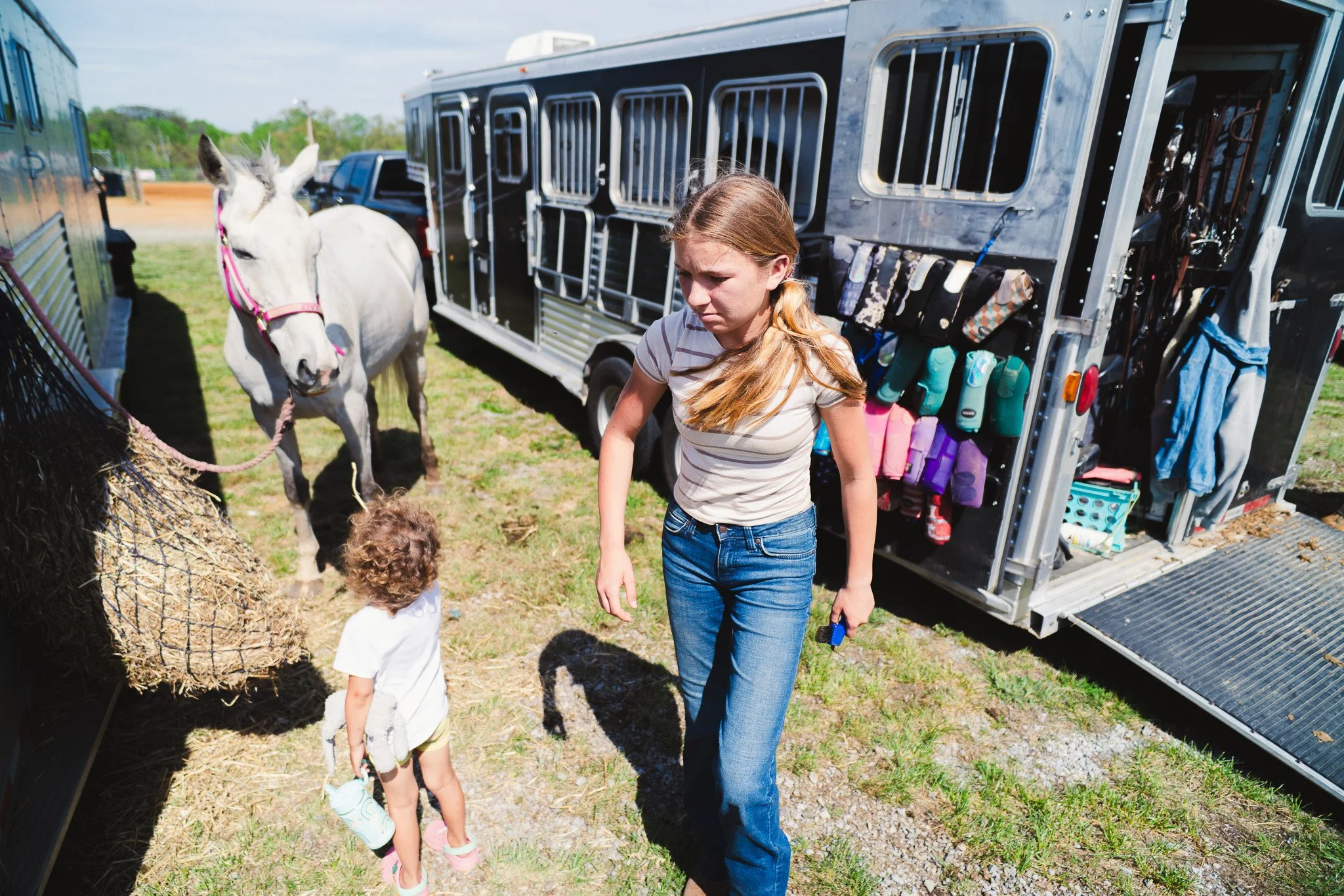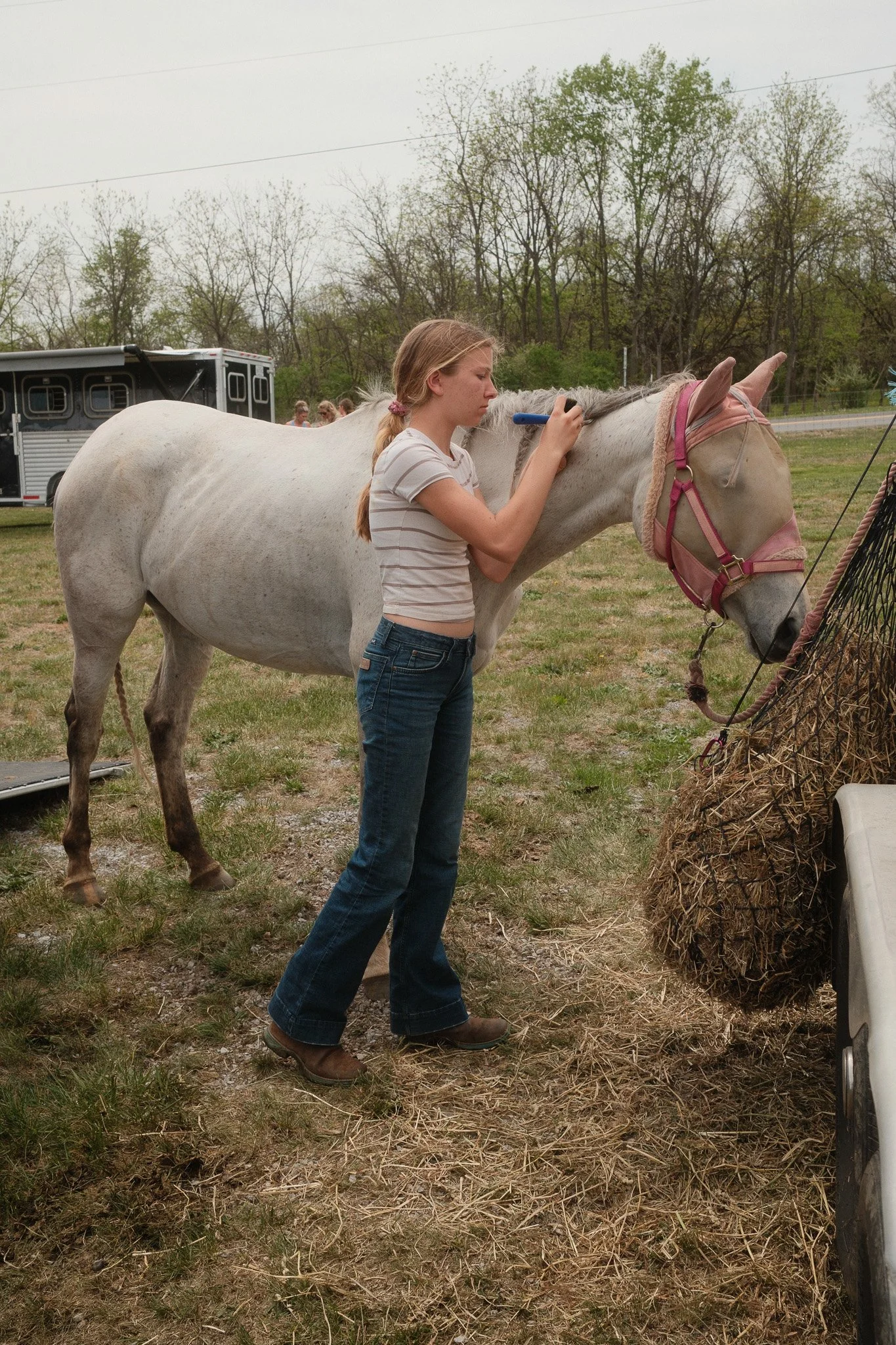 When we arrived, I met up with my good friends Brittany and Bob, and also got to meet Lily’s mom, Somer, who was incredibly kind. The riders, Emory and Lily, were fully in their element, moving through their routines of feeding, brushing, and preparing their horses, all while the energy of the event buzzed around them. There’s something about that environment that just clicks for me—it’s where I feel most in sync with what I’m trying to capture.